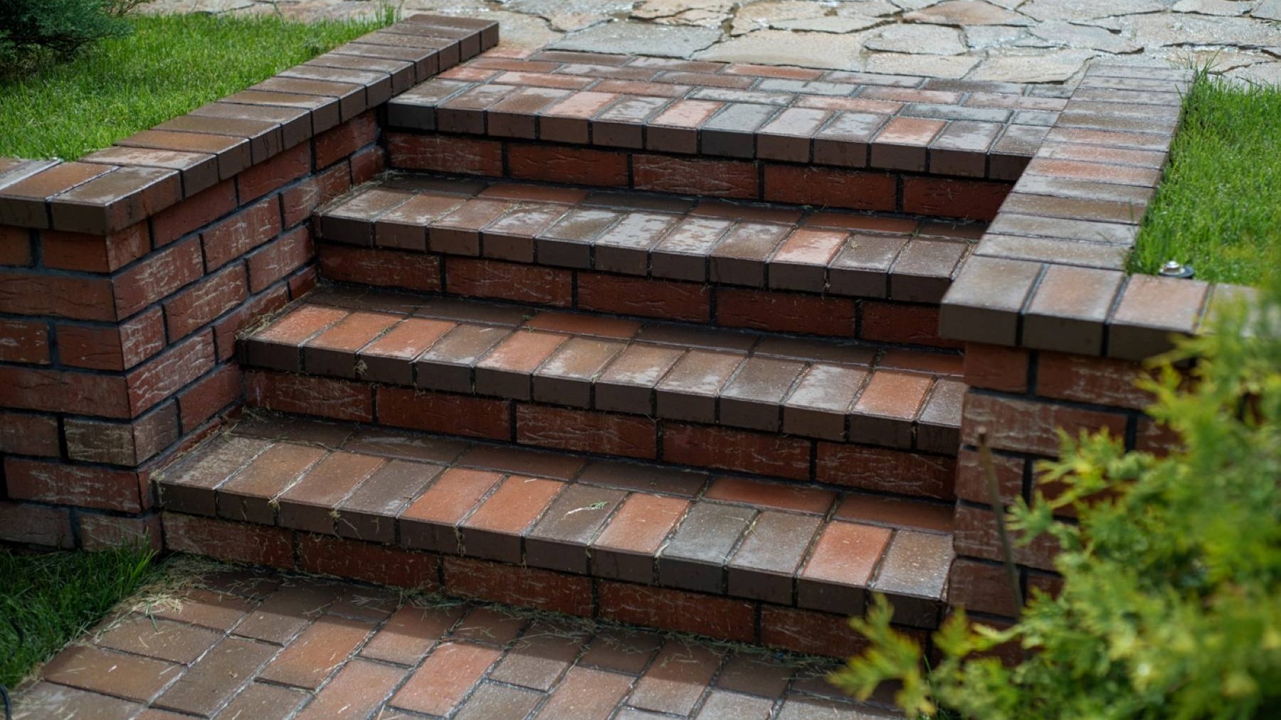 Рядовая укладка клинкера подходит для укладки на бетонные основания отмосток, прямых дорожек или извилистых дорожек больших радиусов.