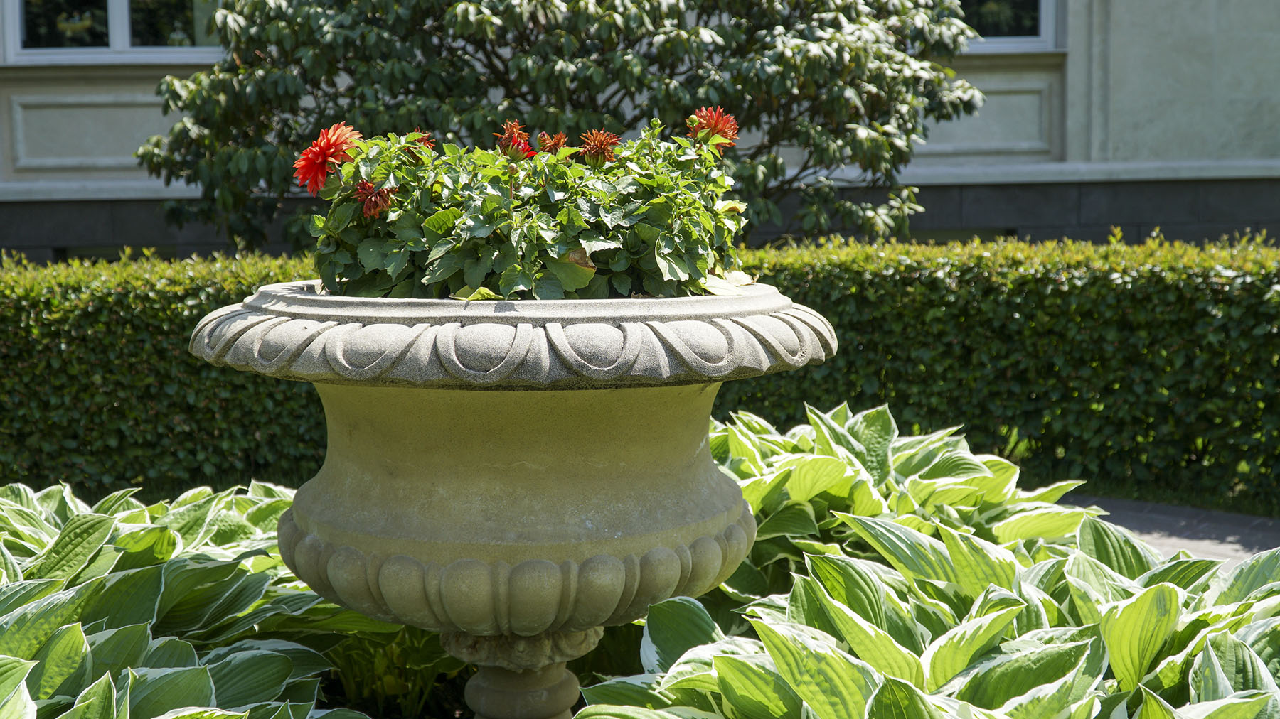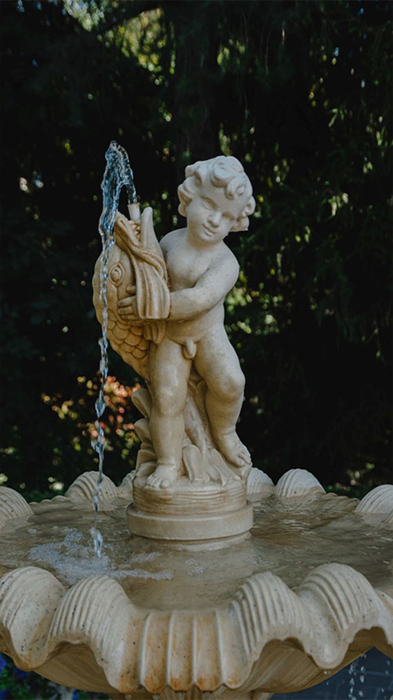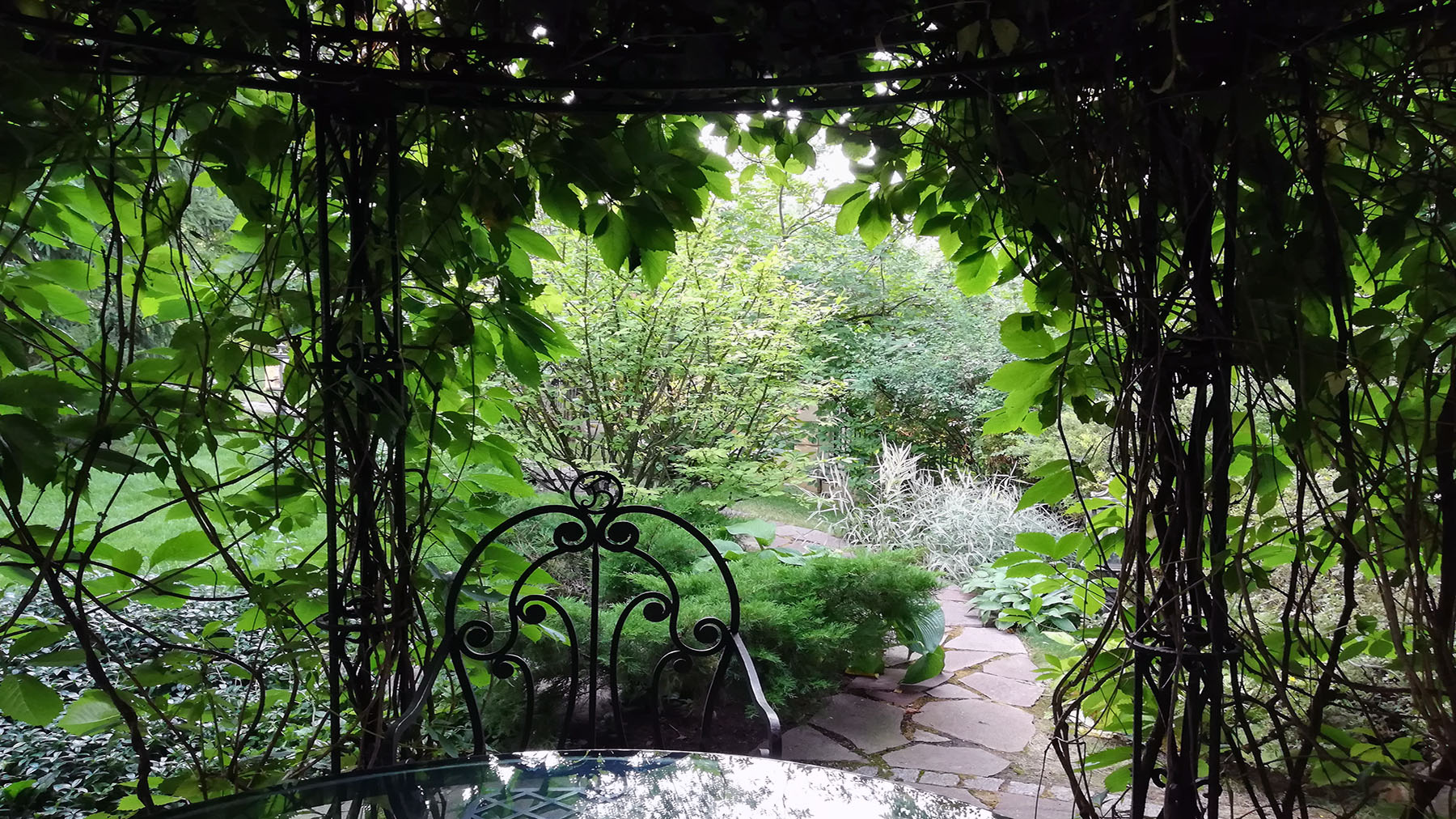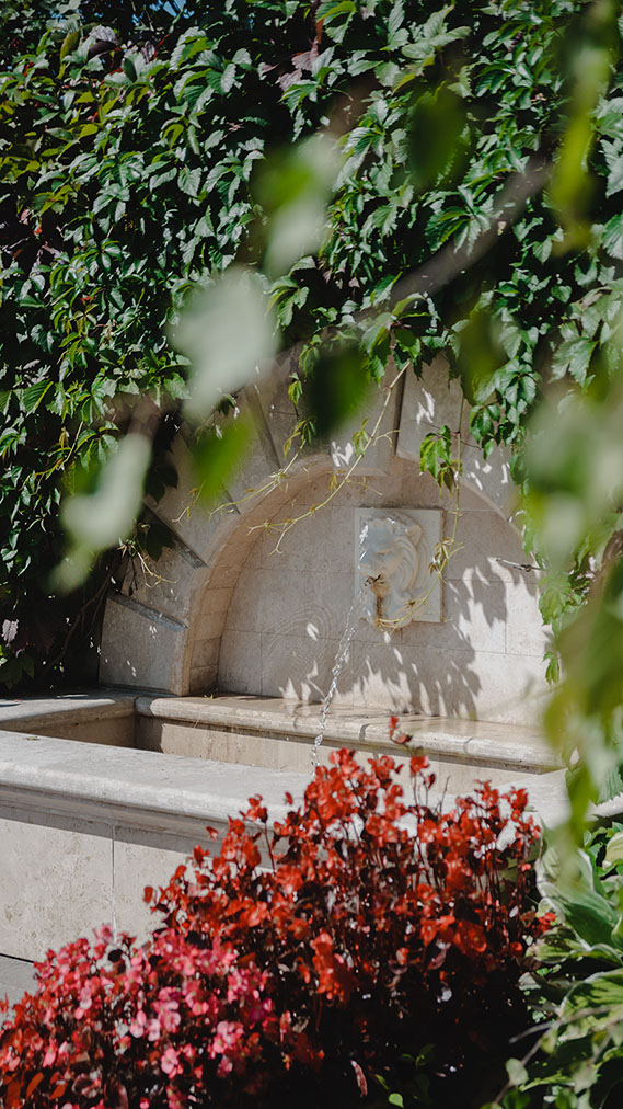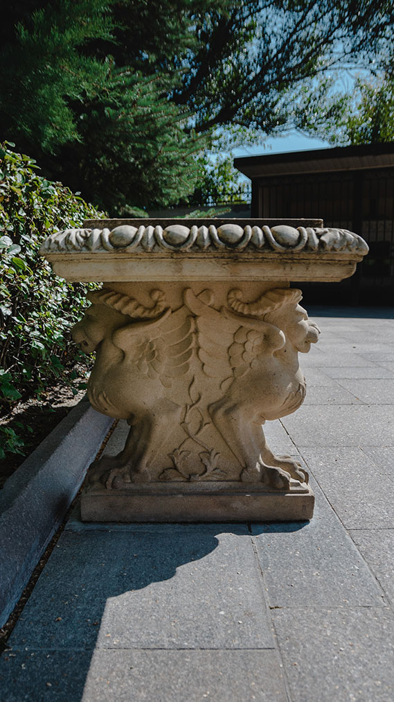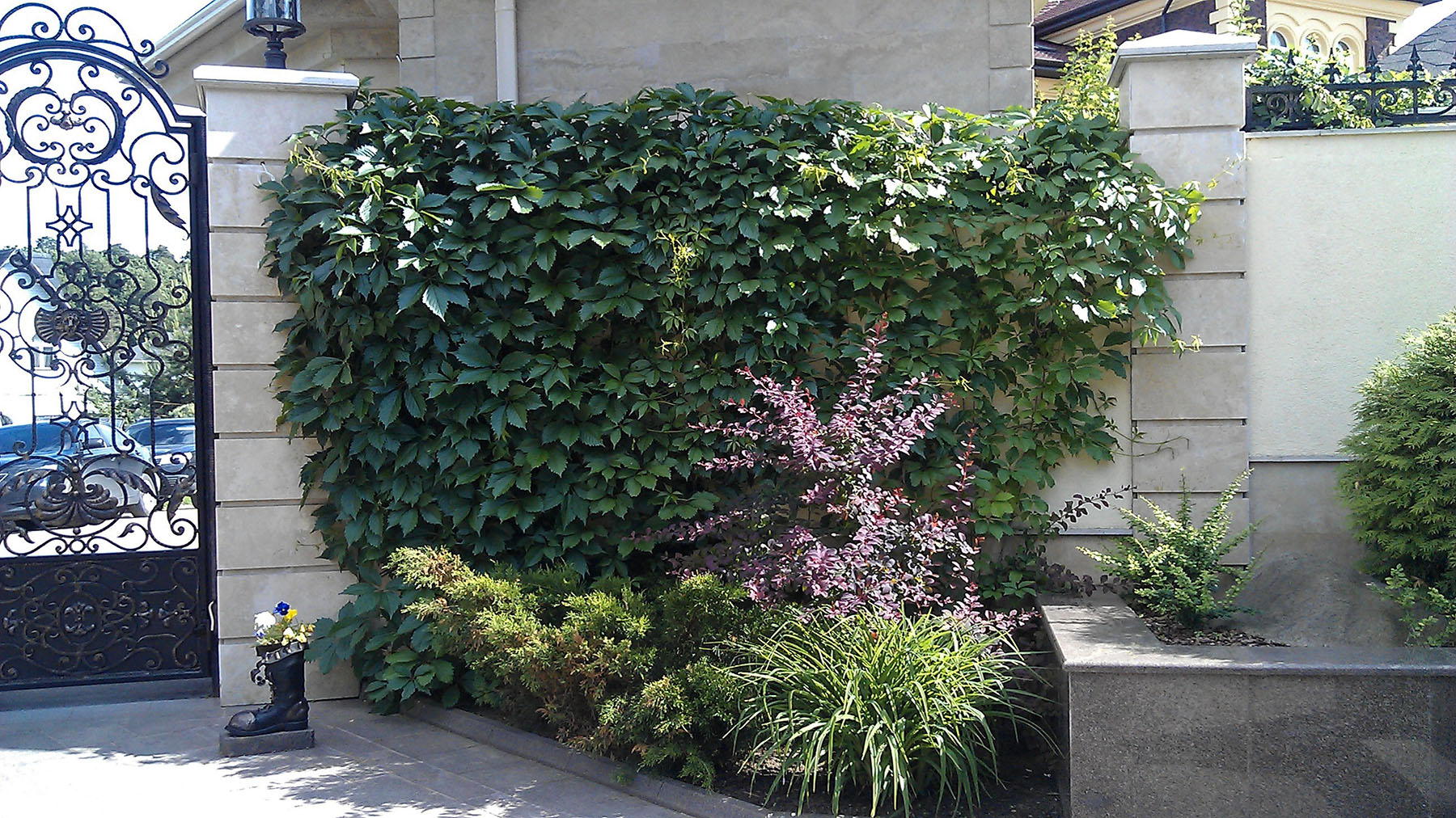 Основным материалом дорожек стал натуральный гранит и рваный песчаник в лесной зоне участка. Аллеи обрамлены стрижеными кустарниками и деревьями, что создает эффект "зеленых коридоров".