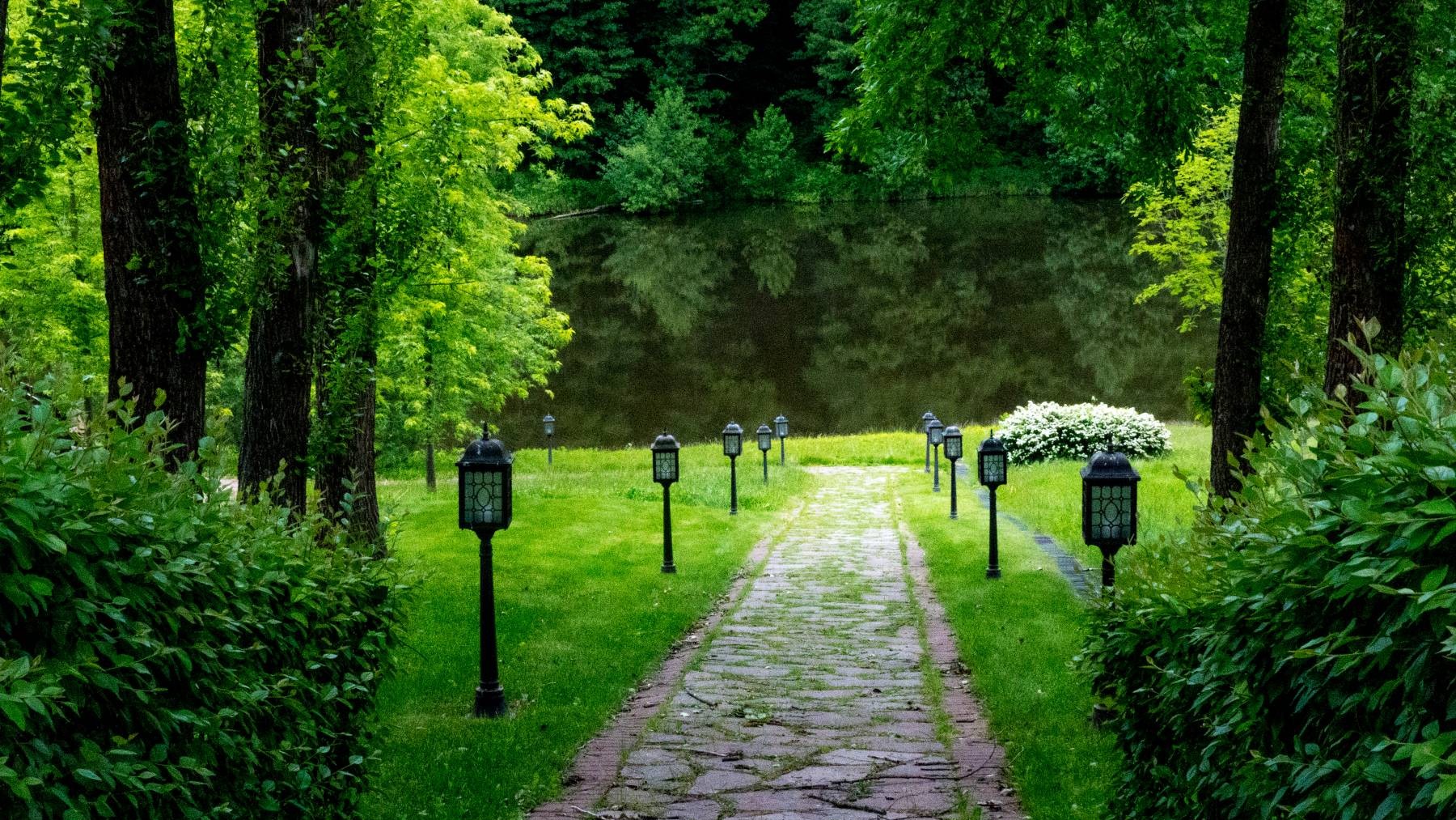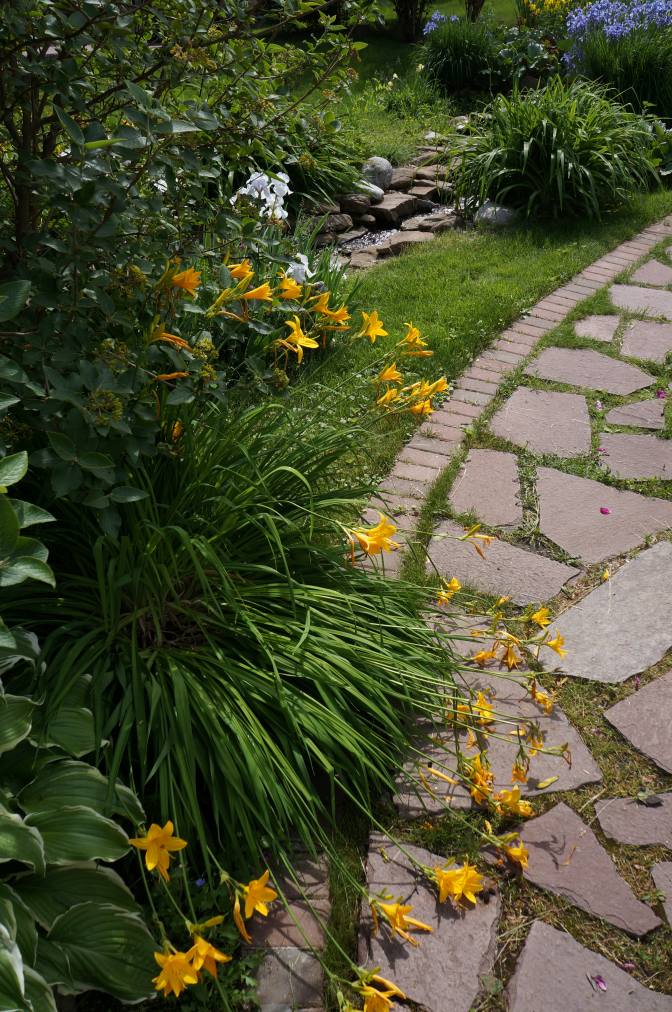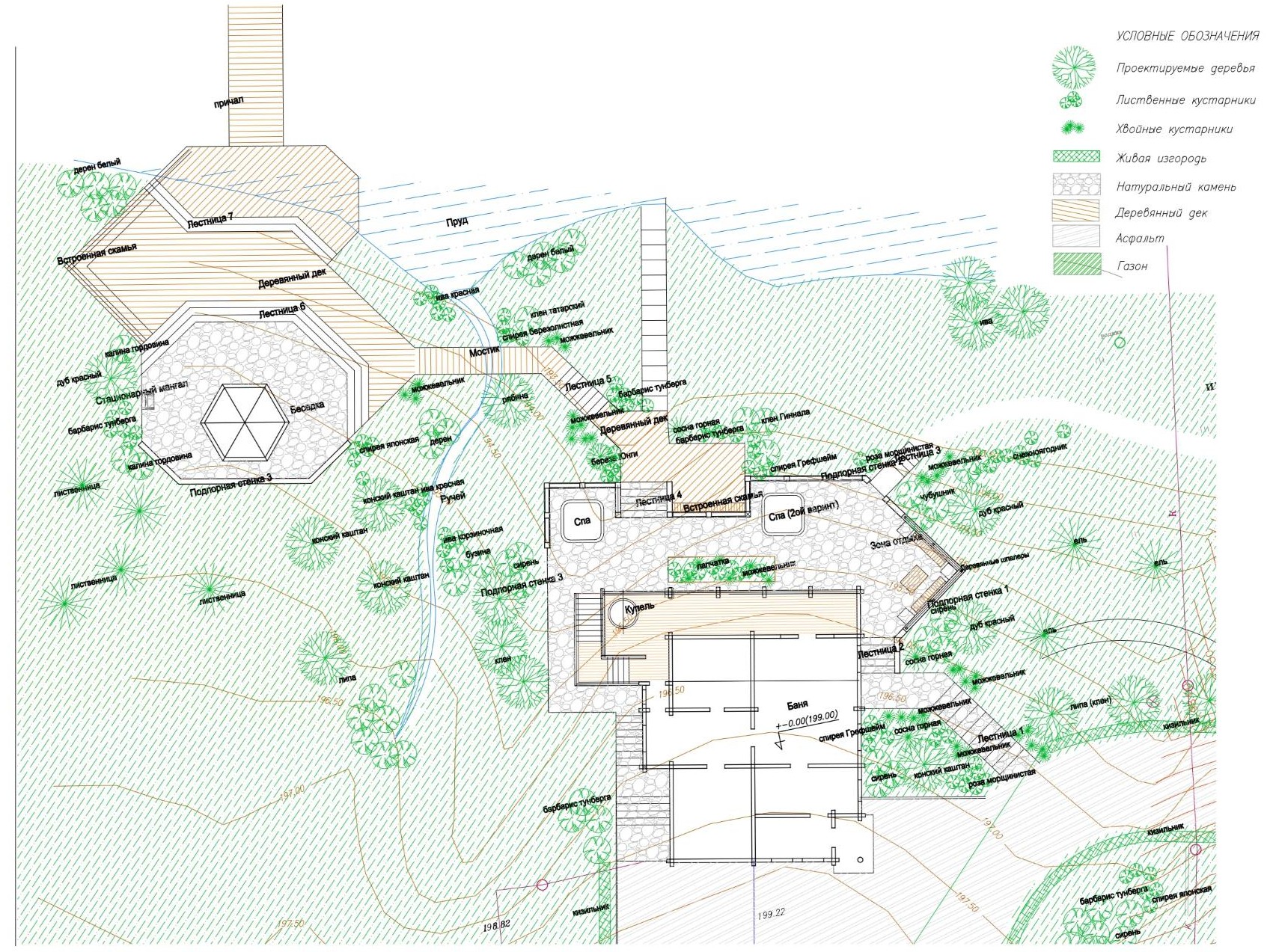 Единая дорожно-тропиночная сеть из натурального камня связывает воедино все узловые части территории.