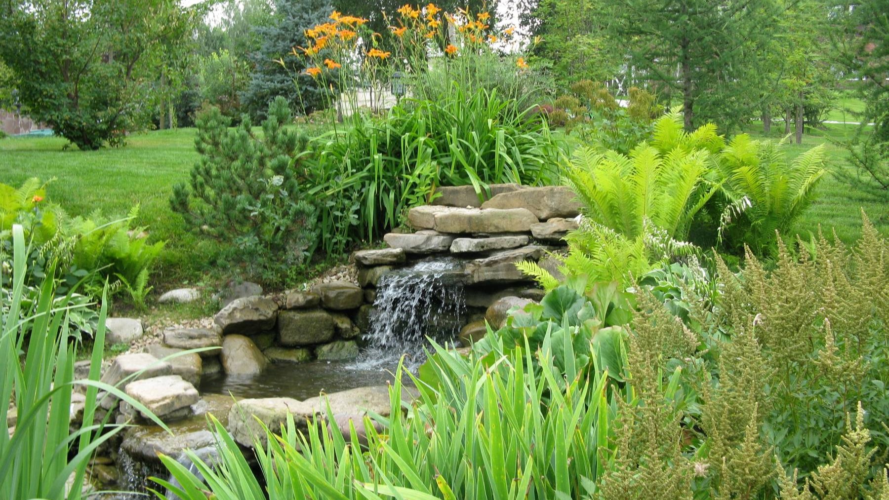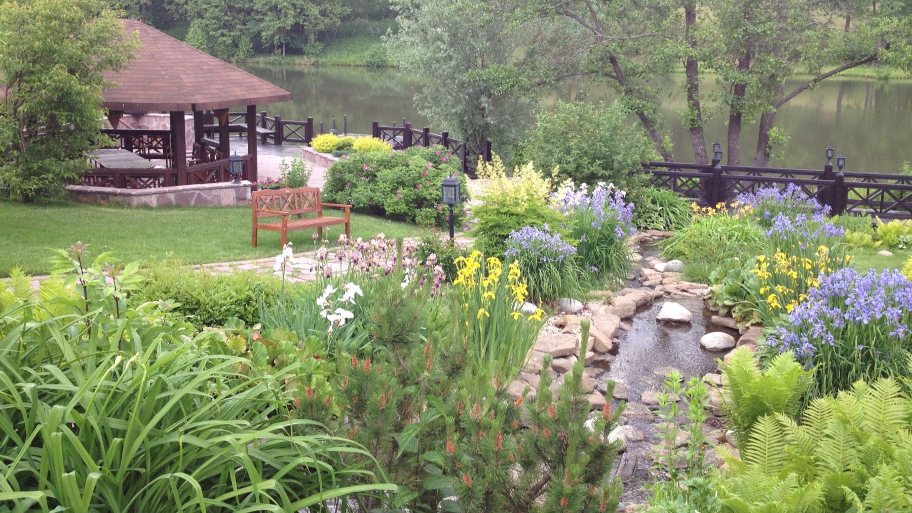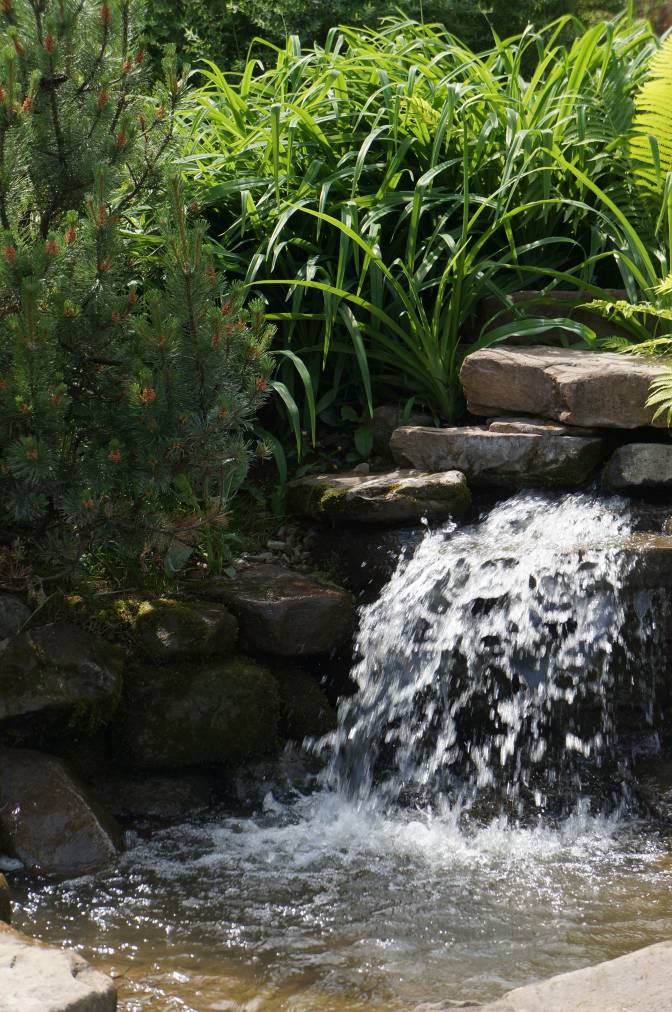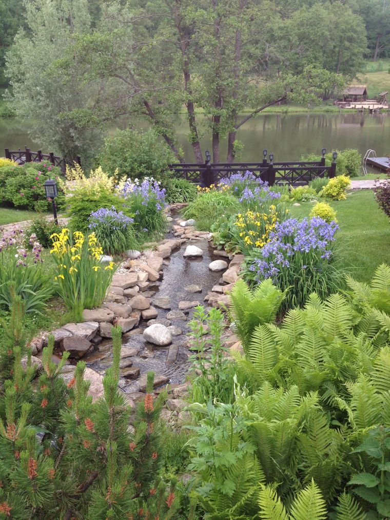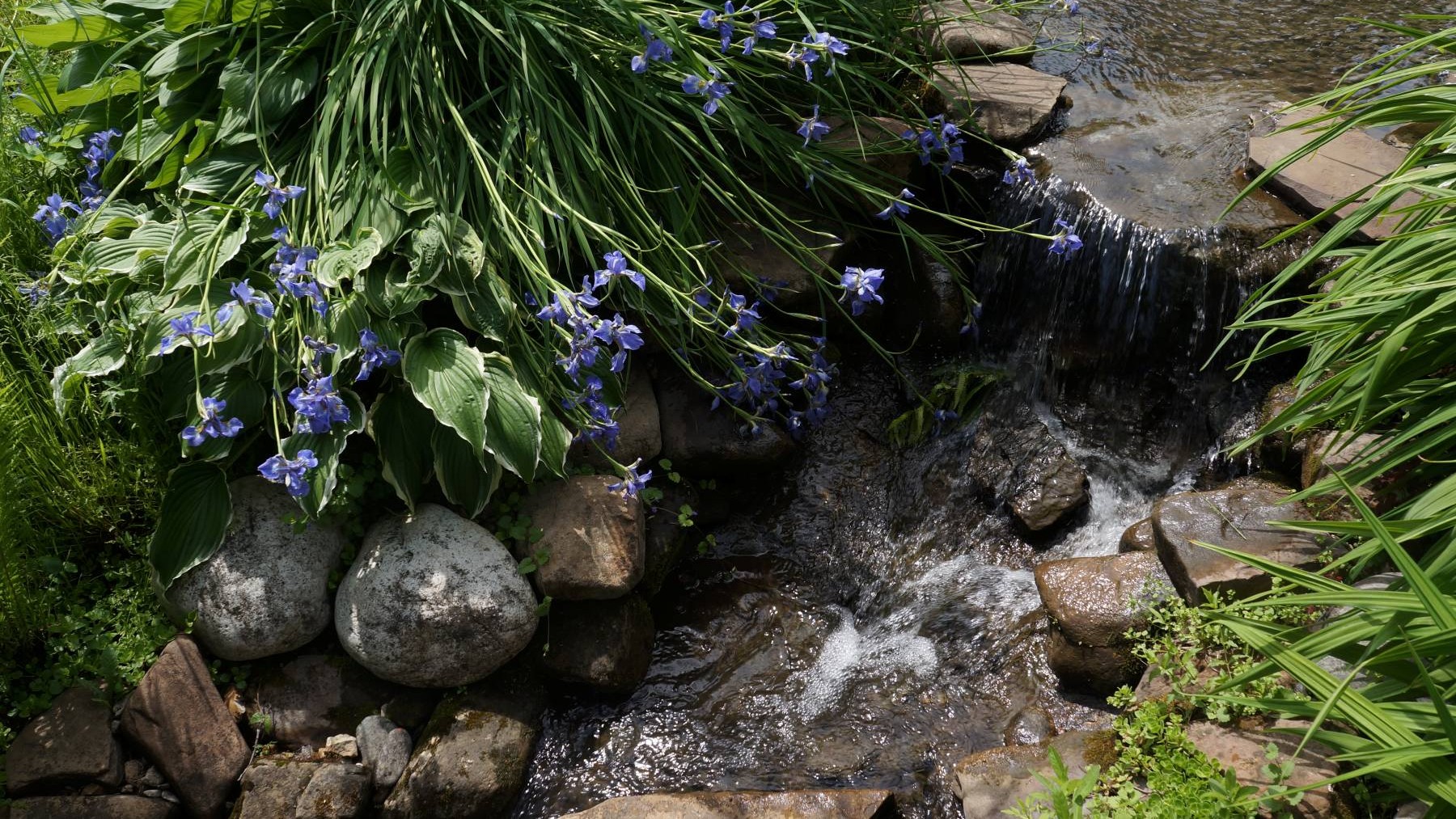По естественному сколону в сторону озера течет живописный ручей с несколькими каскадными водопадами.