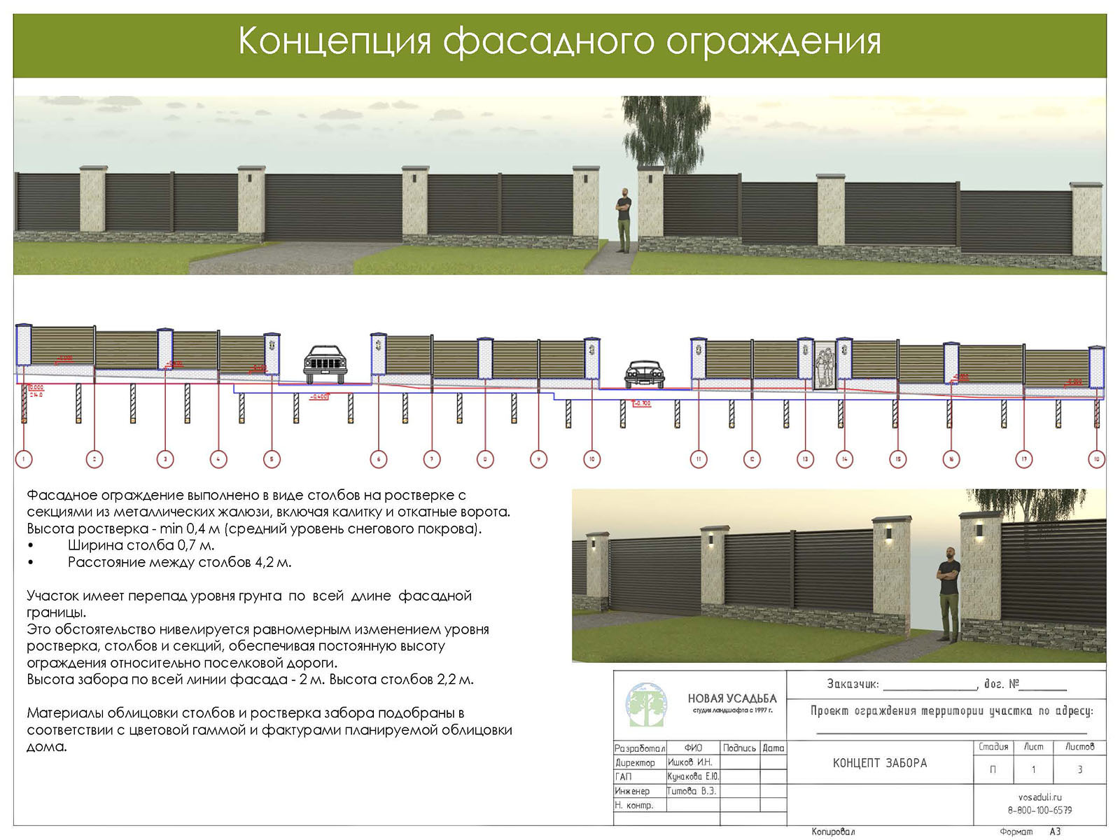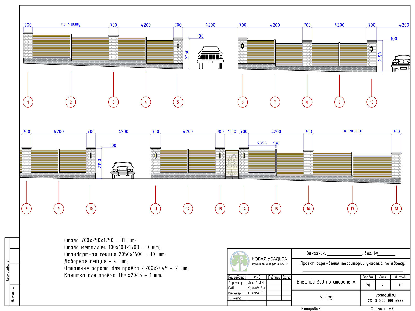 Обсудим с Вами, внесем коррективы, согласуем окончательный вариант: типы и размеры столбов и секций.