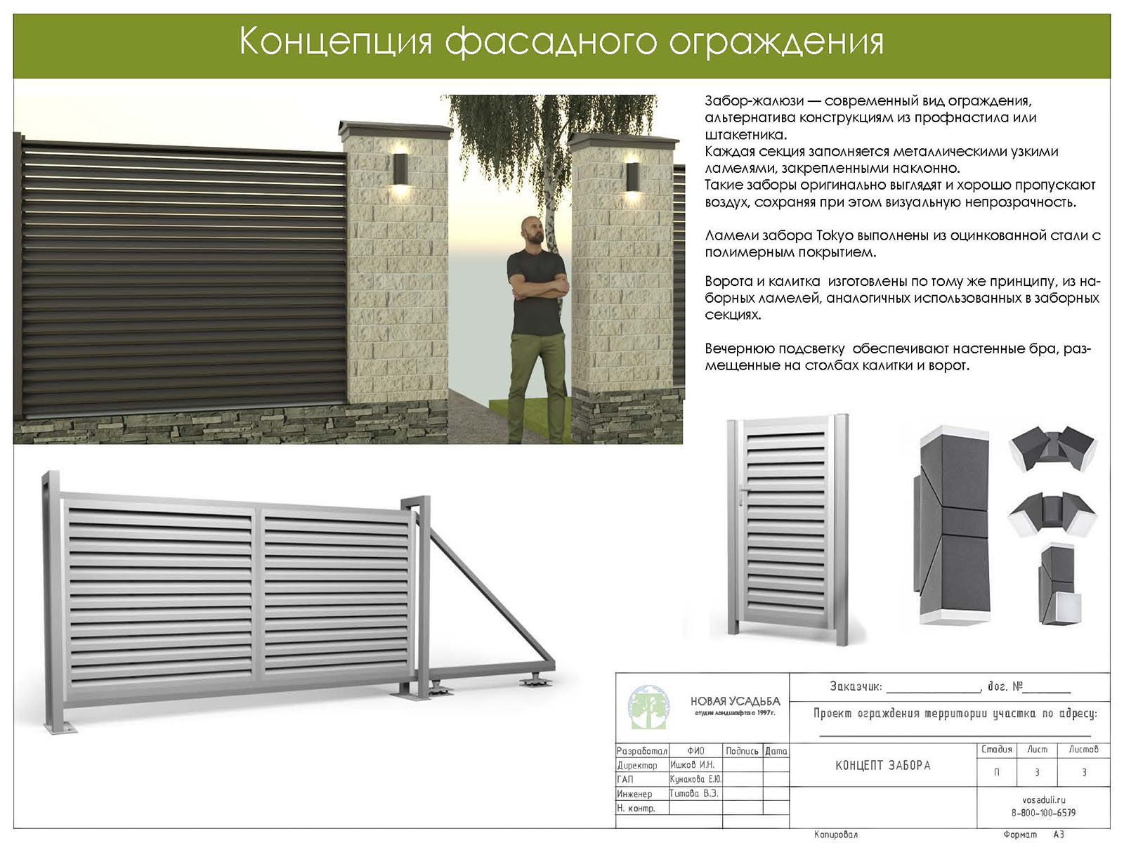 Мы разработаем и представим два варианта эскиза въездной группы и секций ограждения в трехмерной визуализации.